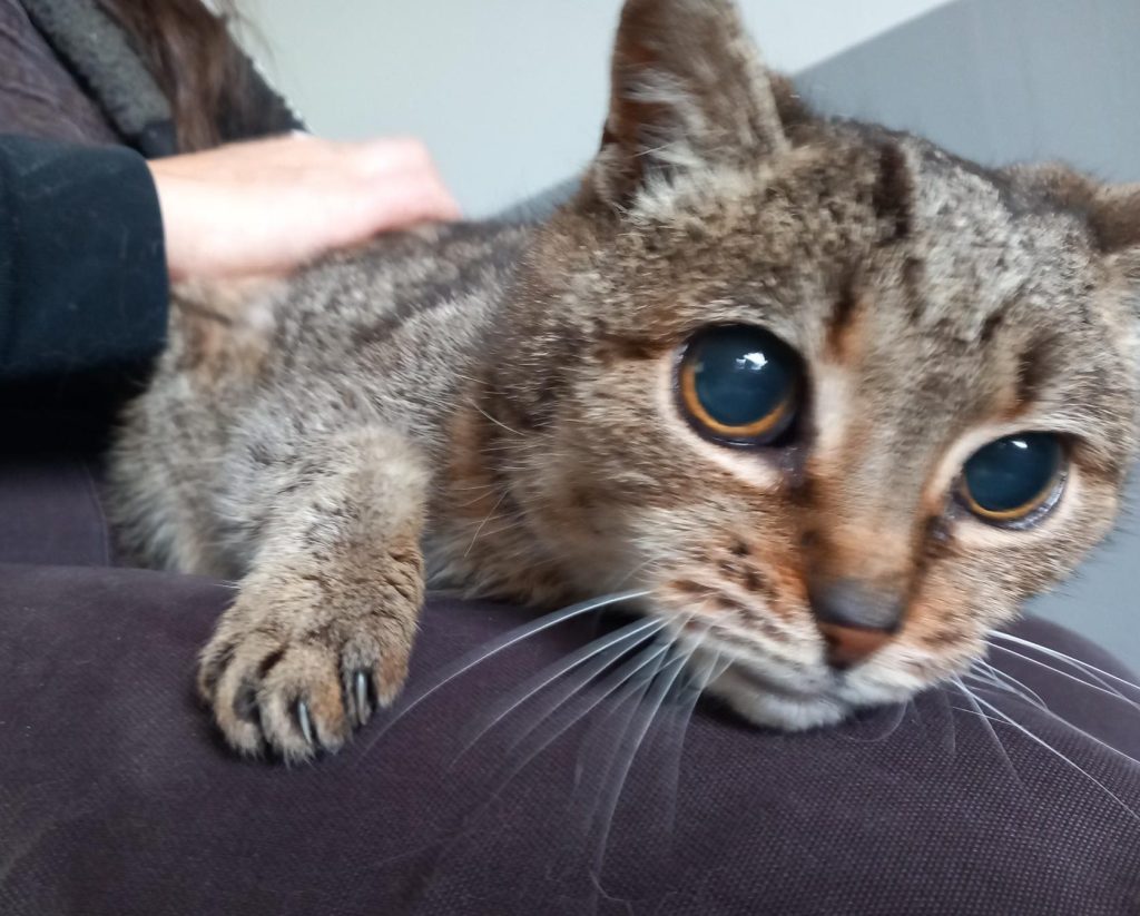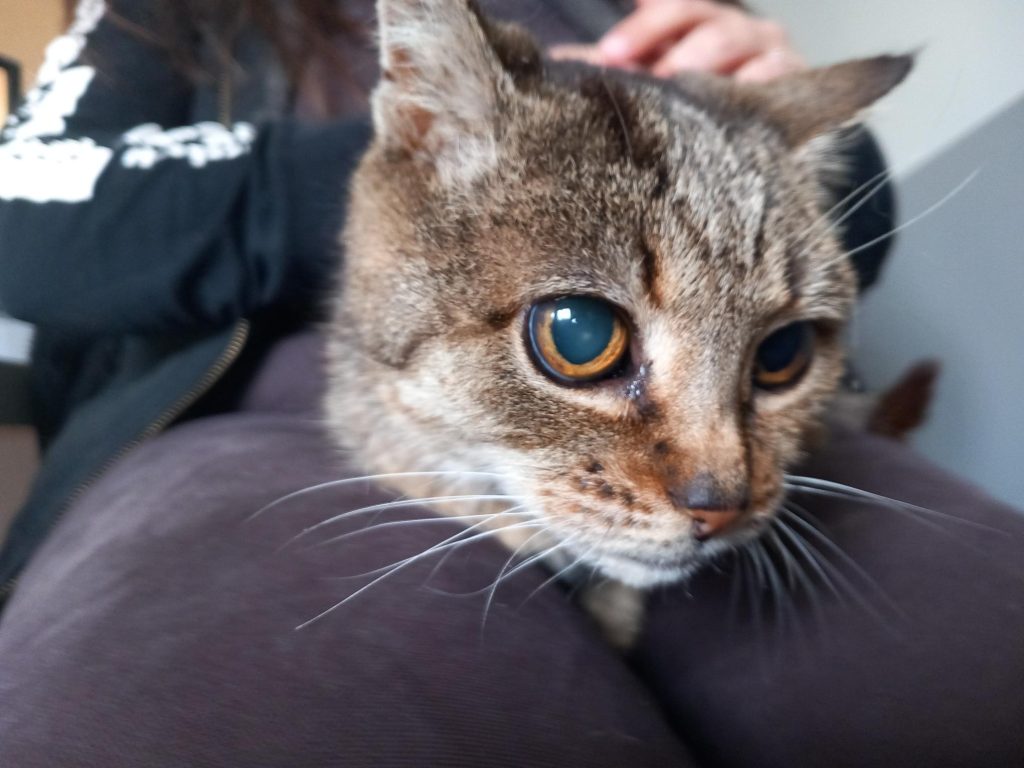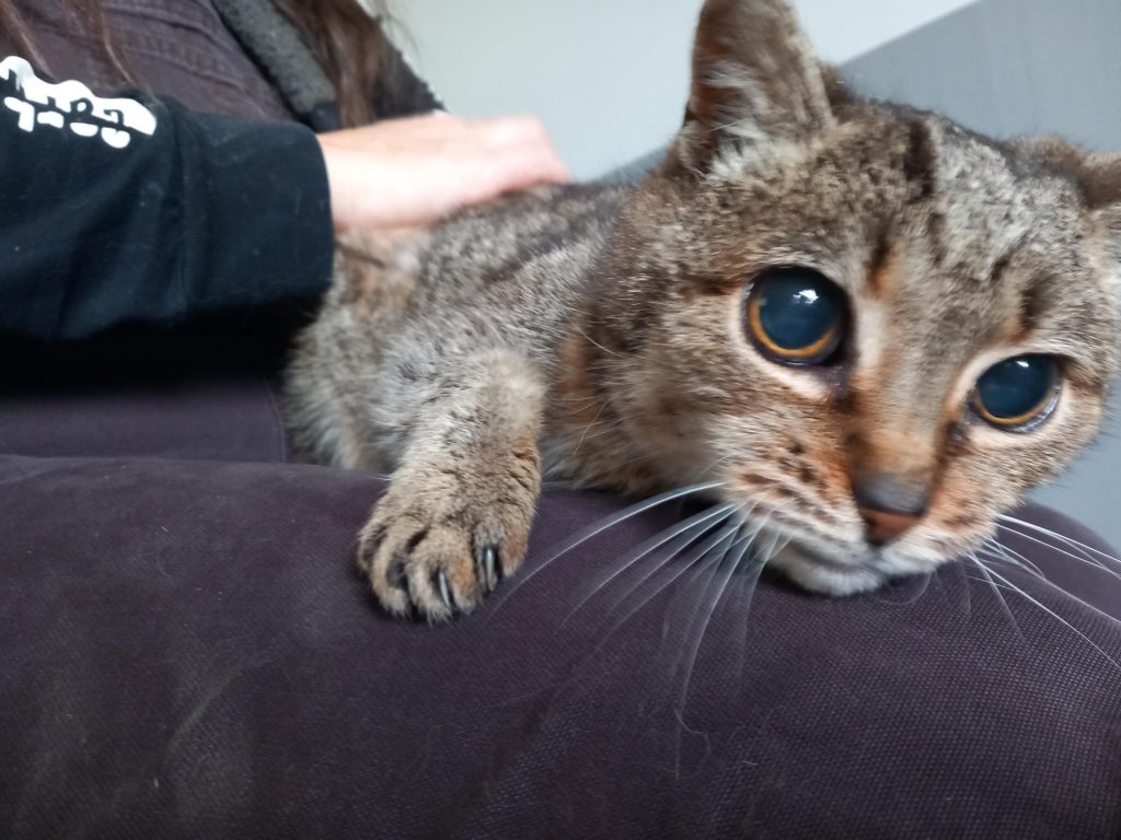 Côté santé, Feta est sourde et aveugle. Il lui manque également une patoune. Son état actuel est acceptable, mais une surveillance vétérinaire rapprochée sera nécessaire pour les futurs adoptants.