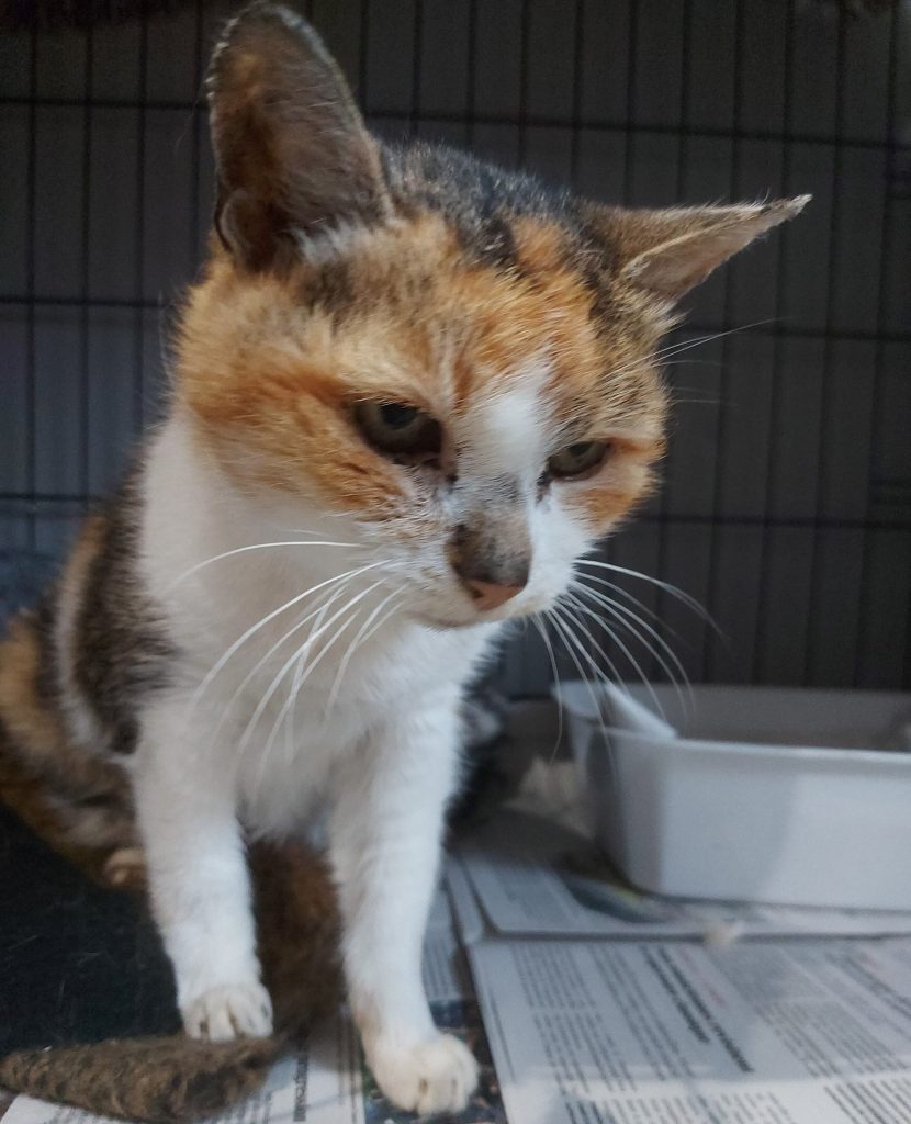 Cette gentille minette espère pouvoir rapidement profiter d’une retraite paisible entourée d’amour.