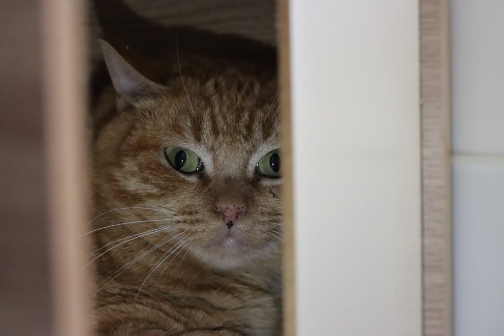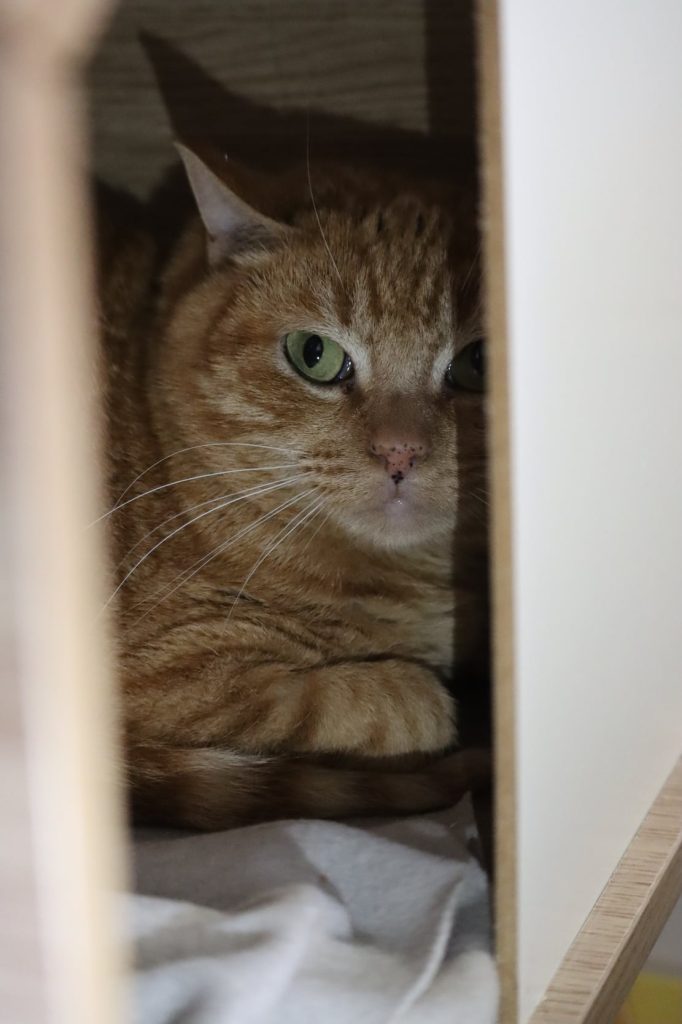 « Goliath » est un chat très craintif et rapidement apeuré par le monde qui l’entoure.