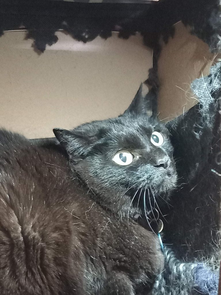Miquette est une chatte craintive. Elle est aussi de nature indépendante et n’apprécie pas trop être portée ni manipulée.