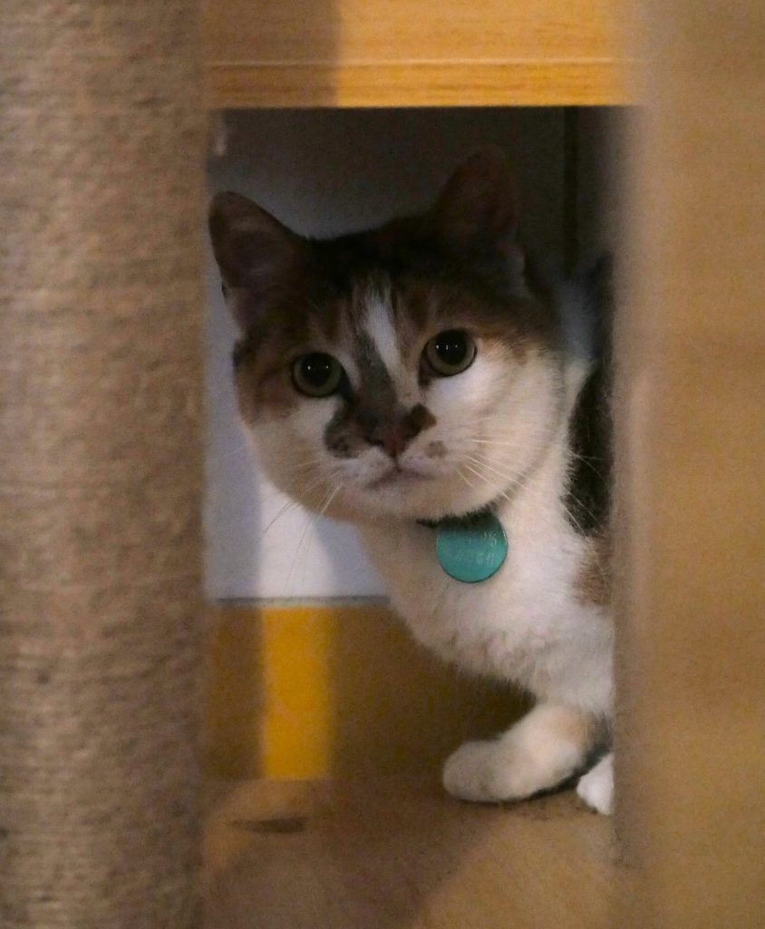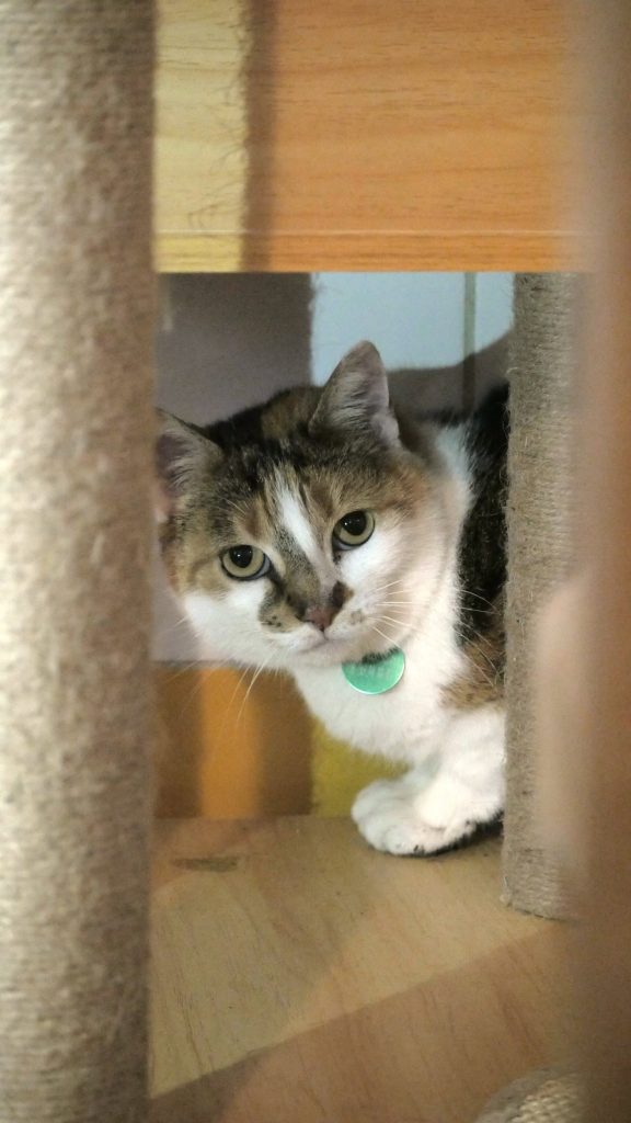 Impressionnée de se retrouver au refuge, elle se montre discrète. Moussette est une minette timide quand elle ne connait pas.