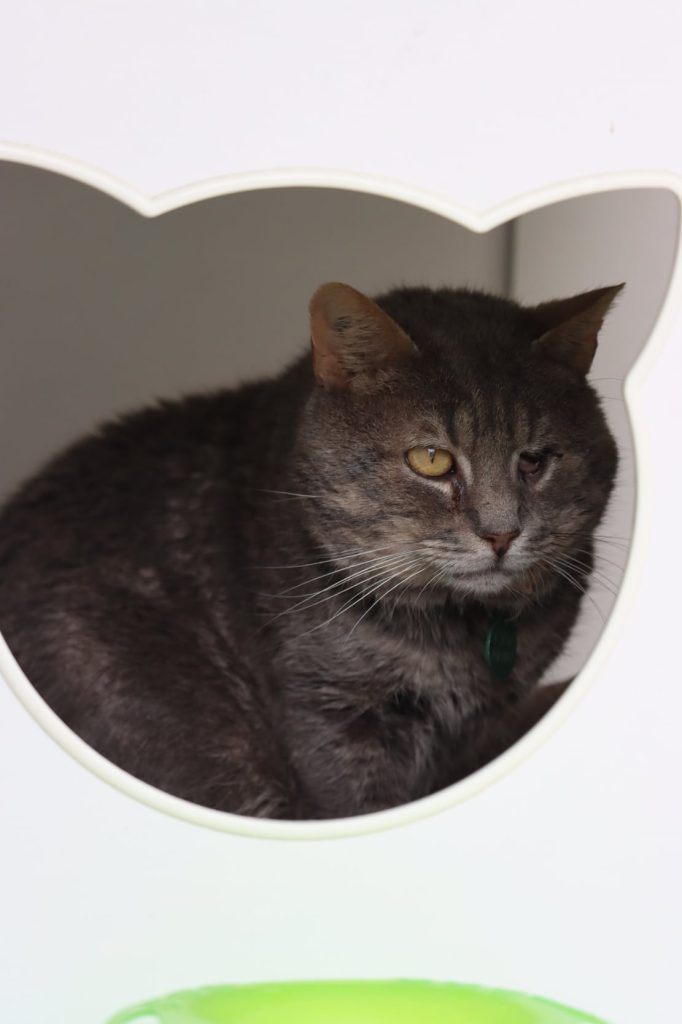 Sparrow est un véritable survivant qui ne demande qu’à oublier son passé. S’il porte sur lui les marques de ses aventures passées — notamment un œil gauche perforé par une ancienne blessure et quelques dents en moins — cela ne l’empêche pas d’être un chat incroyablement affectueux.
