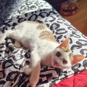 Ancien sauvage, il a appris avec le temps à découvrir l’humain. Encore aujourd’hui, il a un peu de mal à se laisser apprivoiser totalement, bien qu’il cherche le contact assez souvent. Avec du temps et de l’amour, il finira par s’épanouir.