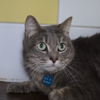 « Sky » est une minette de retour au refuge après avoir été adoptée car elle ne s’adaptait pas à son nouveau foyer.