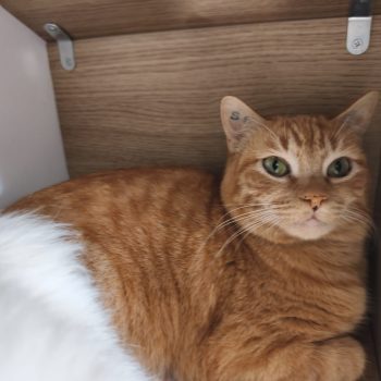 Goliath s’est lié d’amitié avec un autre chat du refuge, le beau Carl, ils sont devenus inséparables. Carl et Goliath seront donc à adopter ensemble.