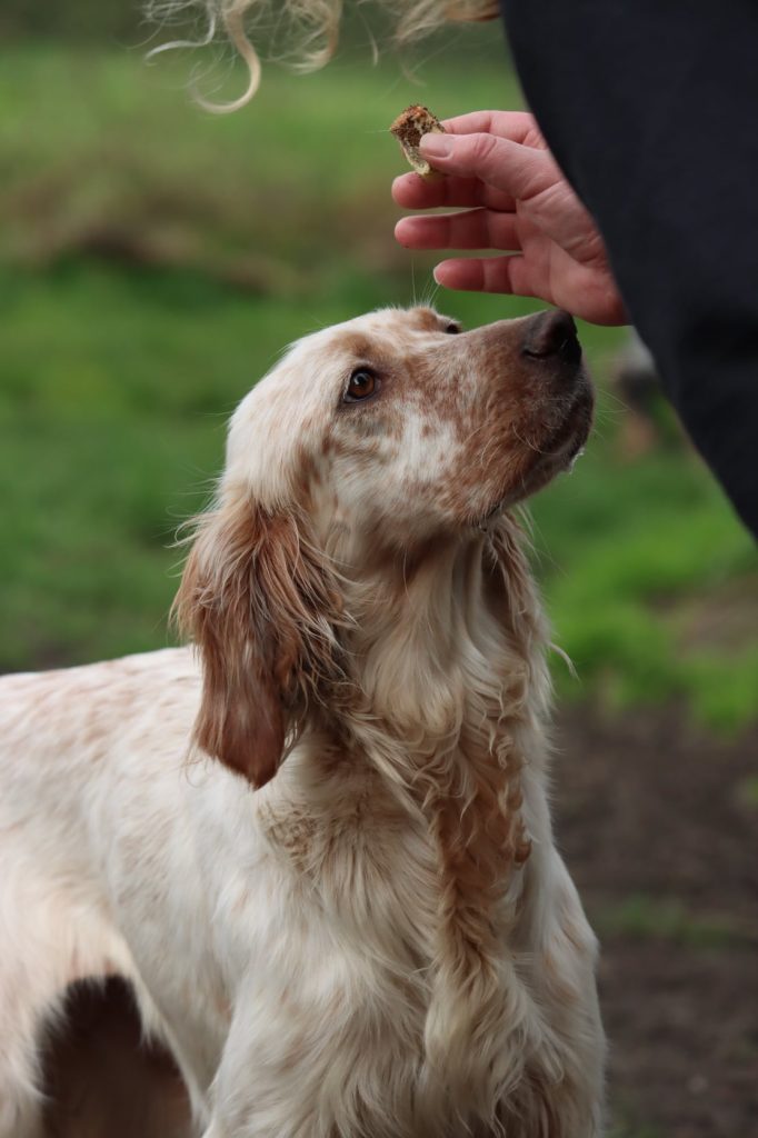 En balade, elle peut tirer un peu en laisse, mais avec des sorties régulières, la possibilité d’explorer et de renifler les odeurs tranquillement elle devrait rapidement s’apaiser.