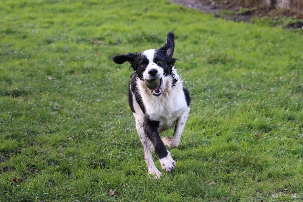 Finn a déjà quelques bases d’éducation et connaît le assis et sait aussi rapporter la balle (oui car monsieur est aussi très joueur !).