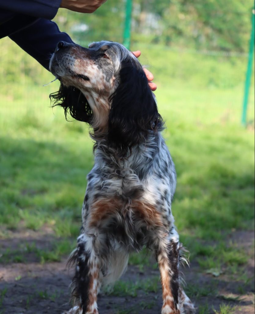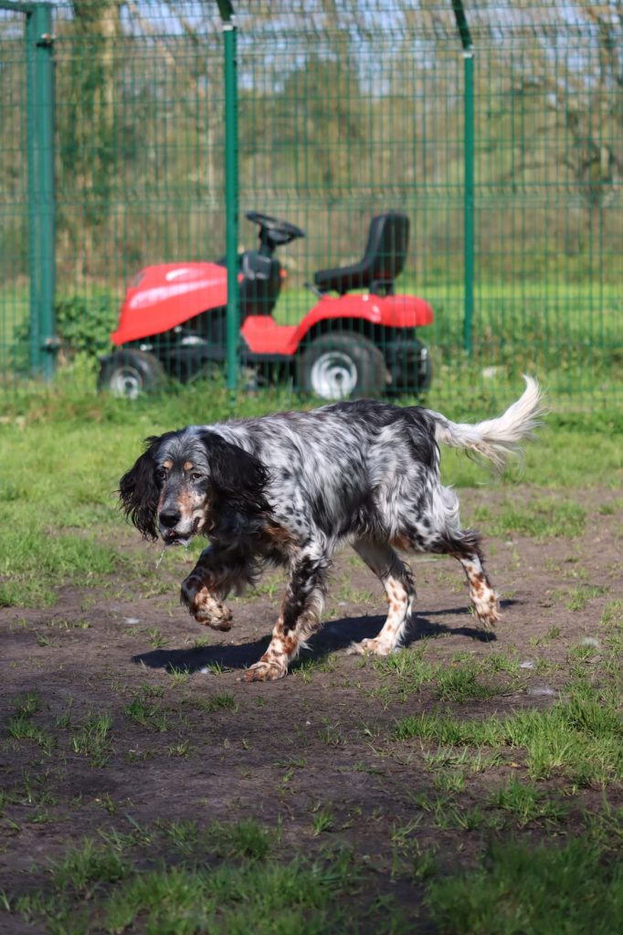 À son âge, il est sûrement un peu perdu de se retrouver entouré d’aboiements mais il n’a pourtant rien perdu de sa gentillesse.