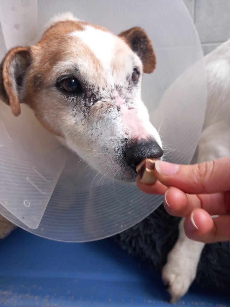 "Hadès" est un vieux loulou arrivé au refuge suite à l’hospitalisation puis au départ de sa propriétaire en EHPAD tout comme son compagnon "Izzy".