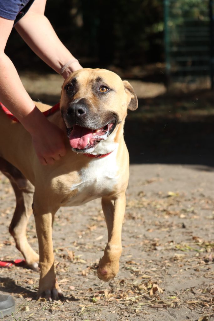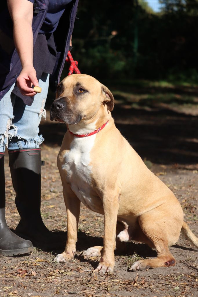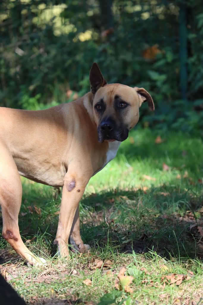 "Mars" est un gros pépère assez puissant. Très gentil et affectueux, il aime la compagnie des humains. En promenade, Mars peut tirer en laisse mais avec de bonnes sorties quotidiennes et un apprentissage de la marche en laisse il devrait réussir à s’apaiser. Mars a tendance à être assez anxieux. La solitude pourra donc être difficile à gérer pour lui. Un travail progressif sur l’apprentissage de la solitude sera donc nécessaire afin qu’il puisse vivre ces moments plus sereinement. Nous ne connaissons pas encore ses ententes avec les autres animaux. Des tests pourront être réalisés s'il y a d'autres animaux dans le foyer. Nous pensons qu'un foyer avec enfant est envisageable sous réserve d’une rencontre préalable en parc de détente pour s’assurer que tout le monde s'entende bien. Un suivi avec un éducateur canin après l’adoption sera recommandé afin de partir sur de bonnes bases dans son nouveau foyer et d’obtenir les bons conseils pour l'accompagner dans sa nouvelle vie. Ce gentil pépère espère rapidement retrouver la stabilité et la bienveillance qu'il mérite, lui aussi. Pour pouvoir adopter Mars il faudra avoir une attestation d’aptitude chiens de catégories ainsi qu’une assurance responsabilité civile.