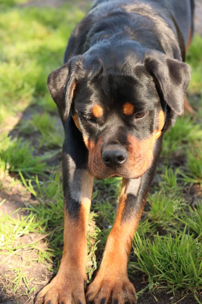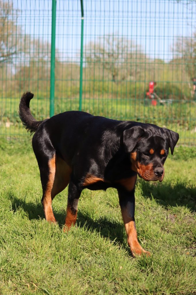 Elle a été laissée en clinique vétérinaire par ses anciens propriétaires qui ne pouvaient plus assumer ses frais de soins. C’est ainsi qu’elle a rejoint le refuge.