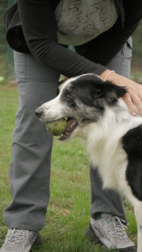 Il est gentil, calme, câlin et très joueur ! D'ailleurs il a une manière très attachante de rendre la balle !