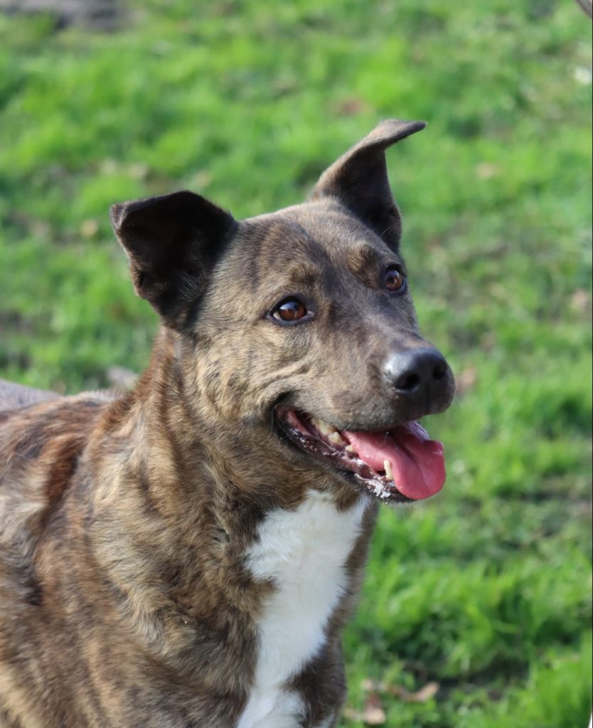 Ruby est arrivée au refuge plutôt sociable avec ses congénères, mais, au fil du temps, la vie au refuge a fait apparaître de la réactivité. Il sera important de reprendre un travail de sociabilisation et de désensibilisation en dehors du contexte du refuge.