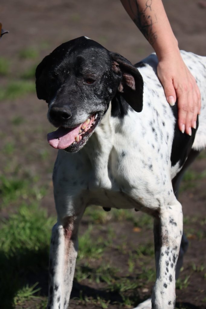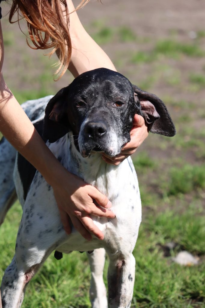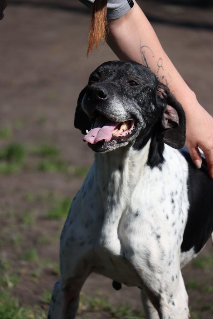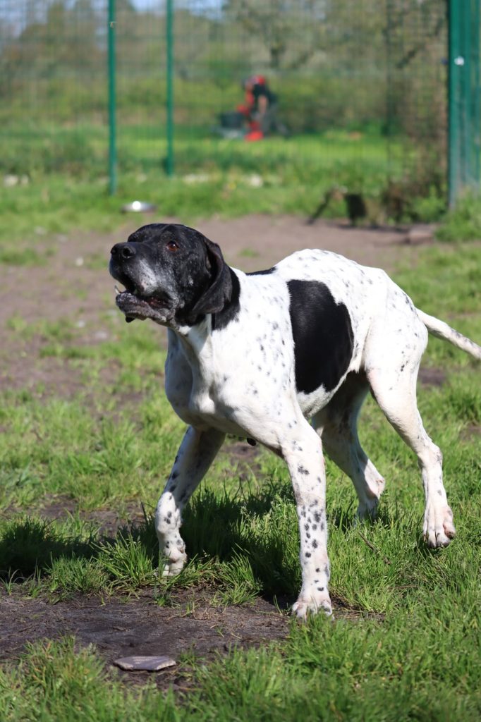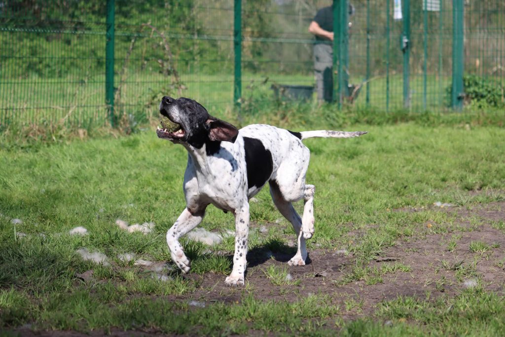 "Serleena" est une adorable pointer de 8 ans très sympa. Malgré son âge, elle a gardé une belle énergie et est restée très joueuse ! C’est son petit plaisir à elle de pouvoir jouer à la balle et de passer du bon temps avec les personnes qui s'occupent d'elle. Serleena a toujours été gentille et agréable avec tout le monde ici. Elle peut même parfois sauter de joie pour dire bonjour ! Serleena est aussi très gourmande, mais après tous ses efforts à courir derrière la balle, elle a bien mérité un petit goûter ! C’est une chienne encore vive qui aura besoin de sorties régulières et de pouvoir se dépenser pour être pleinement épanouie. Lorsqu'elle est laissée seule en parc de détente, elle peut avoir tendance à aboyer ou à faire des va-et-vient le long du grillage. La solitude sera donc peut-être un peu difficile pour elle. Il faudra lui apprendre progressivement à rester seule tout en répondant à ses besoins physiques et mentaux pour qu'elle s'apaise. Serleena s'est montrée sociable avec tous ses congénères, quelle que soit leur taille. Une rencontre préalable sera quand même nécessaire s'il y a déjà un chien dans le foyer. Grâce à son bon tempérament, Serleena devrait pouvoir vivre avec de grands enfants. Serleena est une chienne joyeuse et facile à vivre qui fera le bonheur d’un foyer prêt à lui offrir de l’attention et de belles balades !