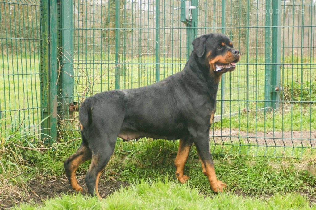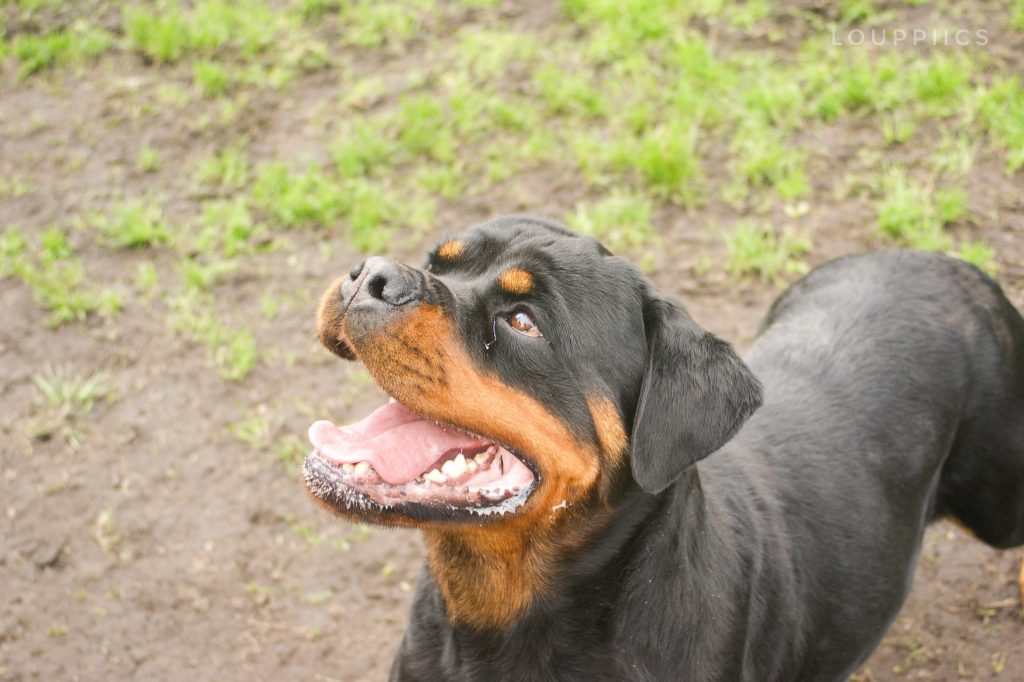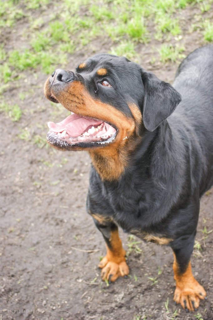 "Shuri" est une jolie chienne très gentille mais un peu bourrine en bon rottweiler qui se respecte !