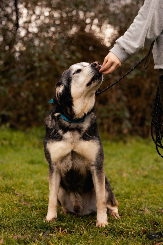 "Tek’noz" a toujours vécu aux côtés de son maître dans la rue. Il se retrouve au refuge suite au décès de son propriétaire.