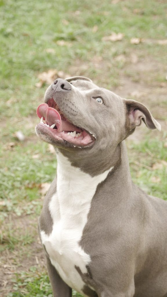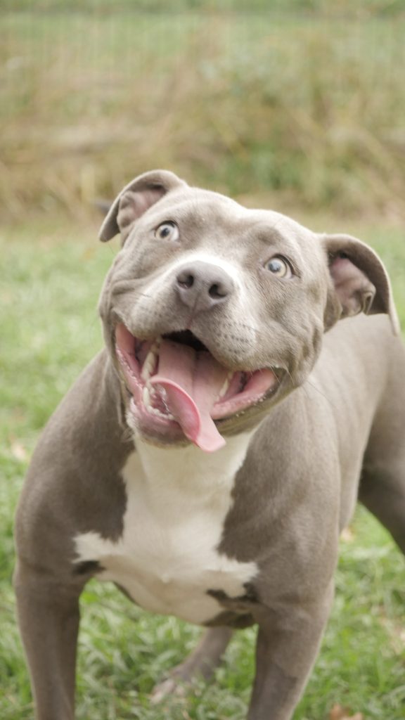 En bonne staffie, elle déborde d'enthousiasme, d’énergie et sait exprimer sa joie de vivre (elle a tendance à sauter c'est vrai !). Toutefois, elle sait aussi se canaliser quand il le faut.