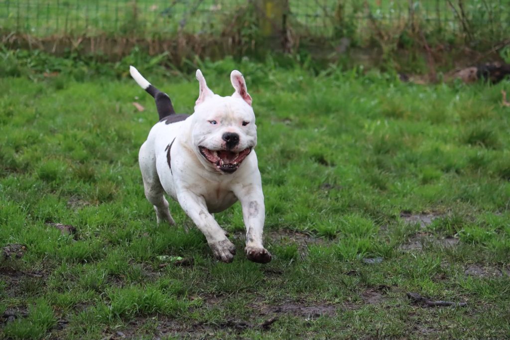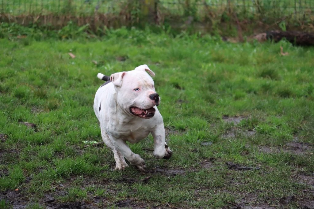 Bien que très gentil, il est aussi assez "bourrin" ! Sa carrure et ses sauts peuvent impressionner surtout lorsqu'il est décidé à jouer. Il lui faudra donc des adoptants à l’aise avec ce gabarit et qui ne prendront pas peur de ses démonstrations parfois un peu trop débordantes !