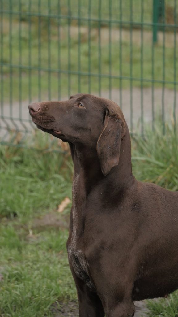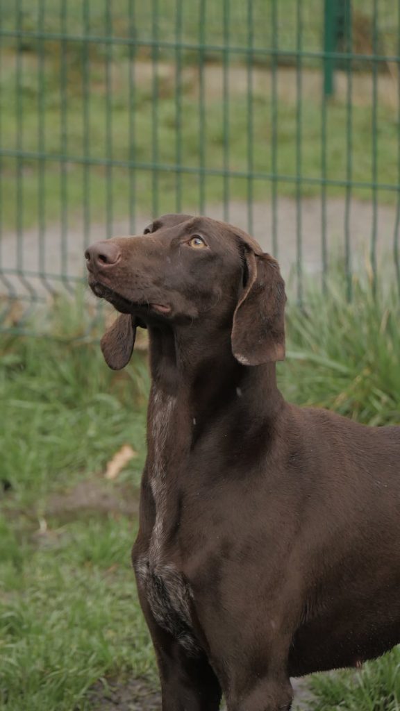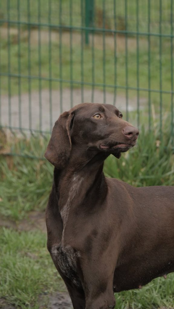 Elle ne connaît pas encore trop la laisse mais comme de grandes balades quotidiennes seront essentielles à son bien-être, elle devrait rapidement s'y habituer.