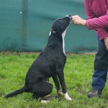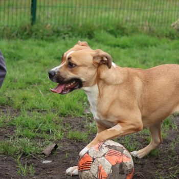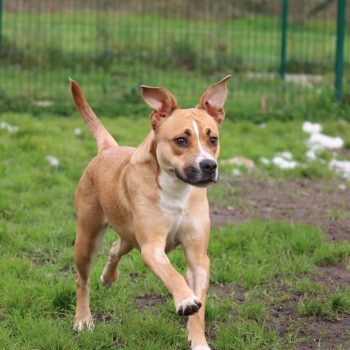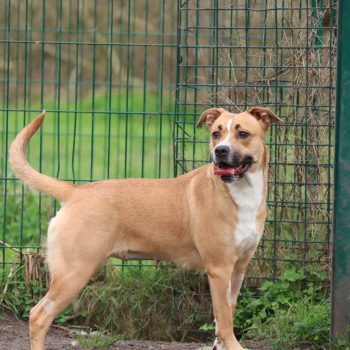 Très actif, il aura besoin d’un adoptant qui pourra lui offrir des sorties quotidiennes pour se dépenser. Il est aussi joueur et, une fois en confiance, il se montre amical et proche de l’humain.