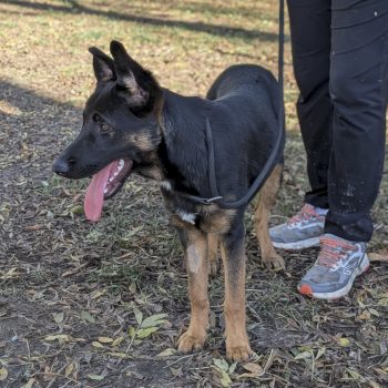 Concernant les chiens il ne les apprécie pas vraiment. D’ailleurs, il peut réagir en laisse lorsqu’il en voit tout comme les joggers avec lesquels il n’est pas très à l’aise. Des balades en longe seront recommandées ainsi qu’un travail de désensibilisation à prévoir pour des sorties plus sereines.