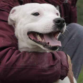 C’est un chien très puissant qui a tendance à tirer en laisse. Il faudra de futurs adoptants capables de gérer la balade avec monsieur muscle!