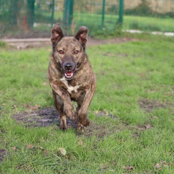 Assez énergique, il peut se montrer un peu « brutus » dans le jeu ou dans ses témoignages d’affection (mais sans agressivité). Voilà pourquoi il sera placé dans un foyer sans jeunes enfants (16 ans minimum).